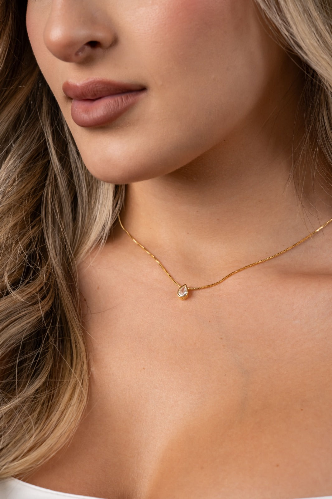 Joya: Cadena Lágrima – Dije en forma de lágrima con piedra central cristalina.