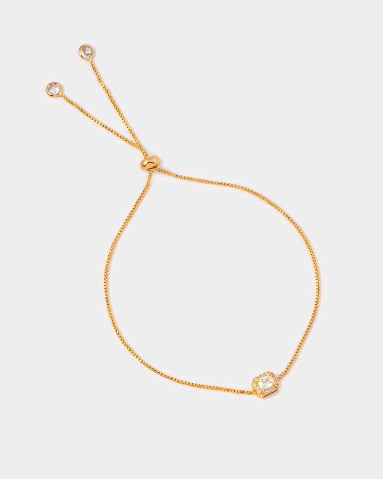 Una joya delicada que encierra grandeza. La Pulsera Crown Cut Mini en oro laminado 18K destaca por su diseño minimalista y sofisticado, con una piedra central talla corona enmarcada en cristales que capturan la luz con cada movimiento. Su ajuste deslizante la hace perfecta para cualquier muñeca, brindando comodidad y estilo sin esfuerzo.
