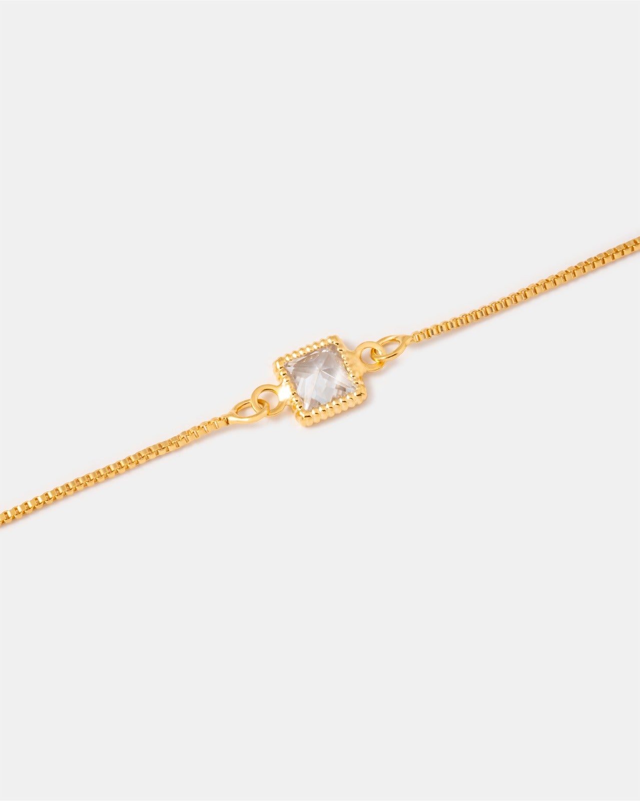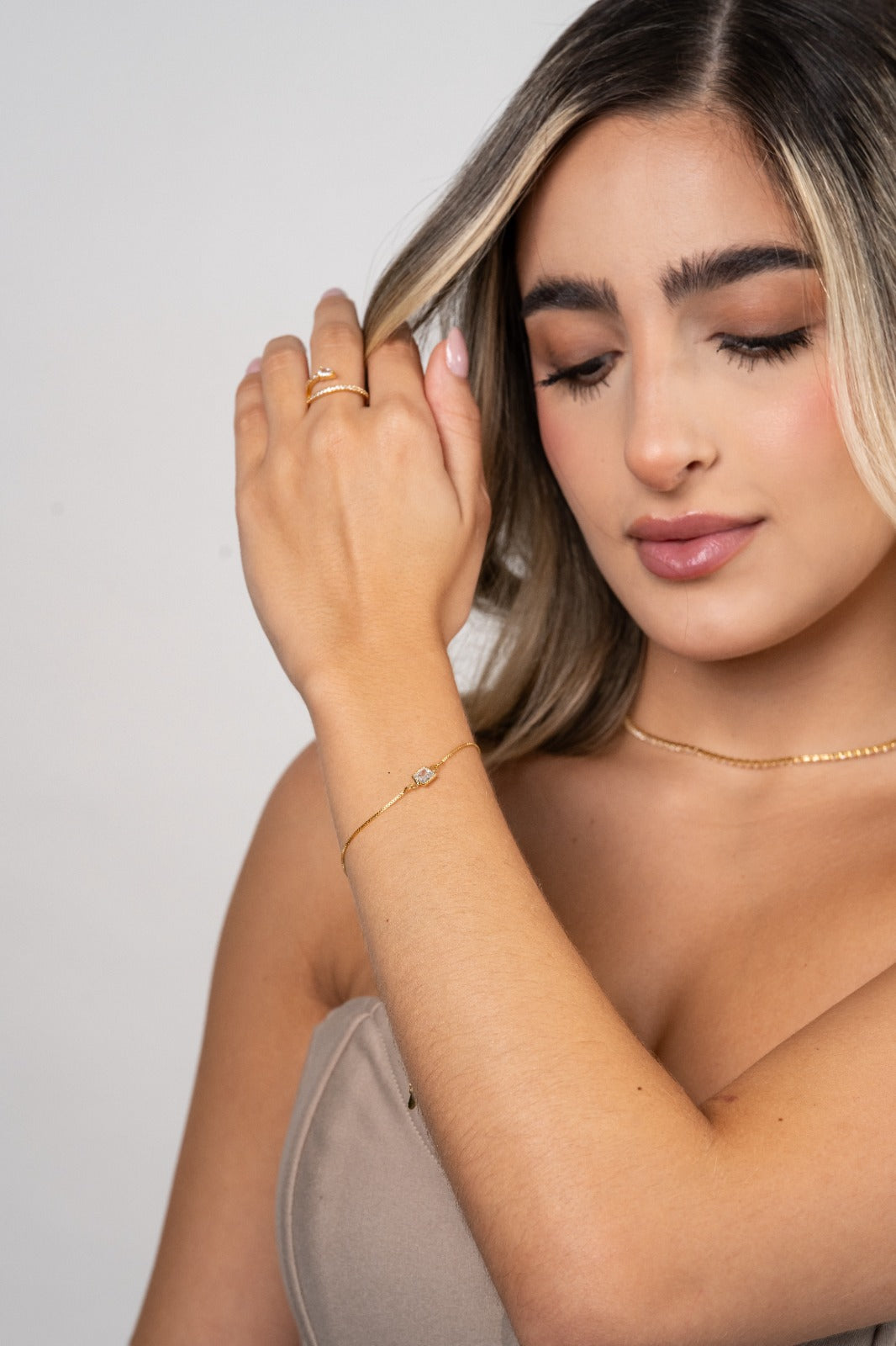 Su diseño minimalista gira en torno a un solo cristal central, corte princesa, que simboliza claridad, intención y propósito. Un recordatorio de que menos es más… y que lo más puro siempre resalta por sí solo.