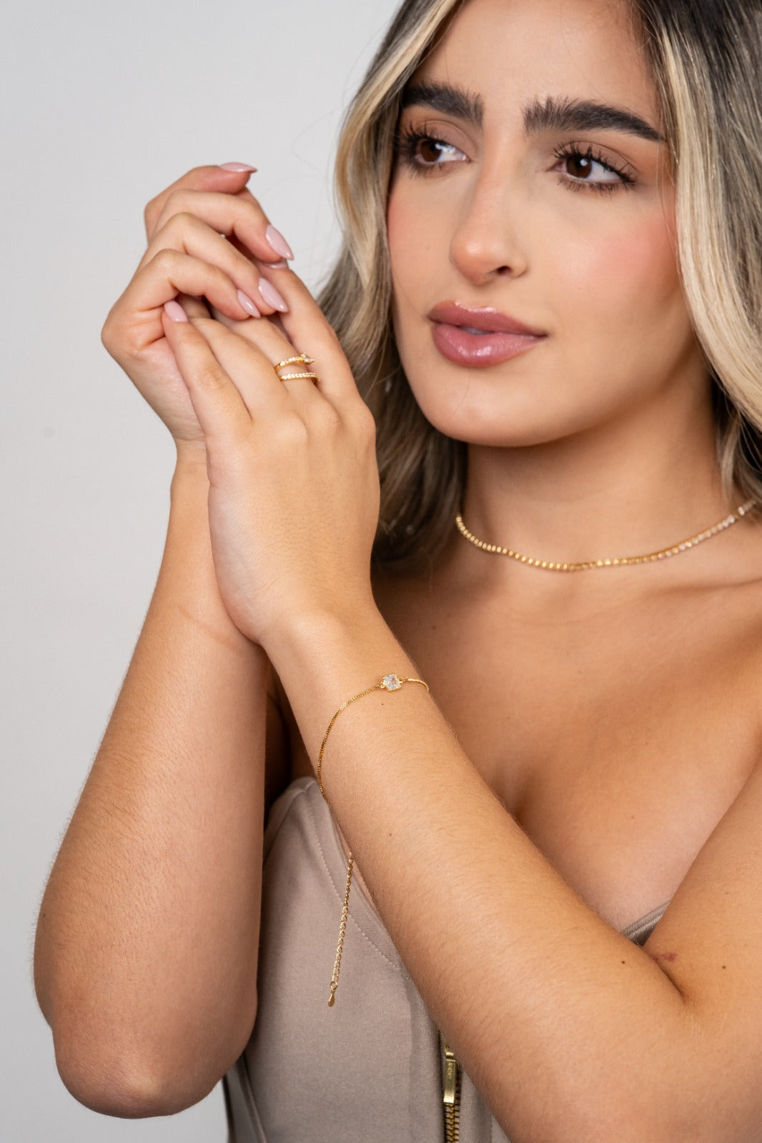Una joya perfecta para usar todos los días, sola o combinada, que se adapta con suavidad a tu muñeca gracias a su diseño ajustable.