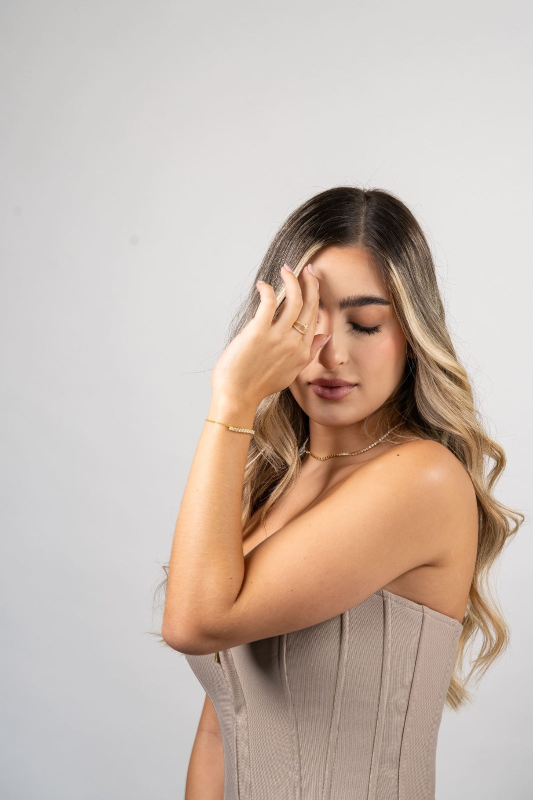 Una joya que combina la elegancia clásica de las pulseras tennis con un diseño refinado y contemporáneo. La Tennis Line deslumbra con una secuencia perfecta de cristales engastados sobre una base de oro laminado 18K, reflejando la luz con cada movimiento como si contara los momentos más brillantes de tu vida.