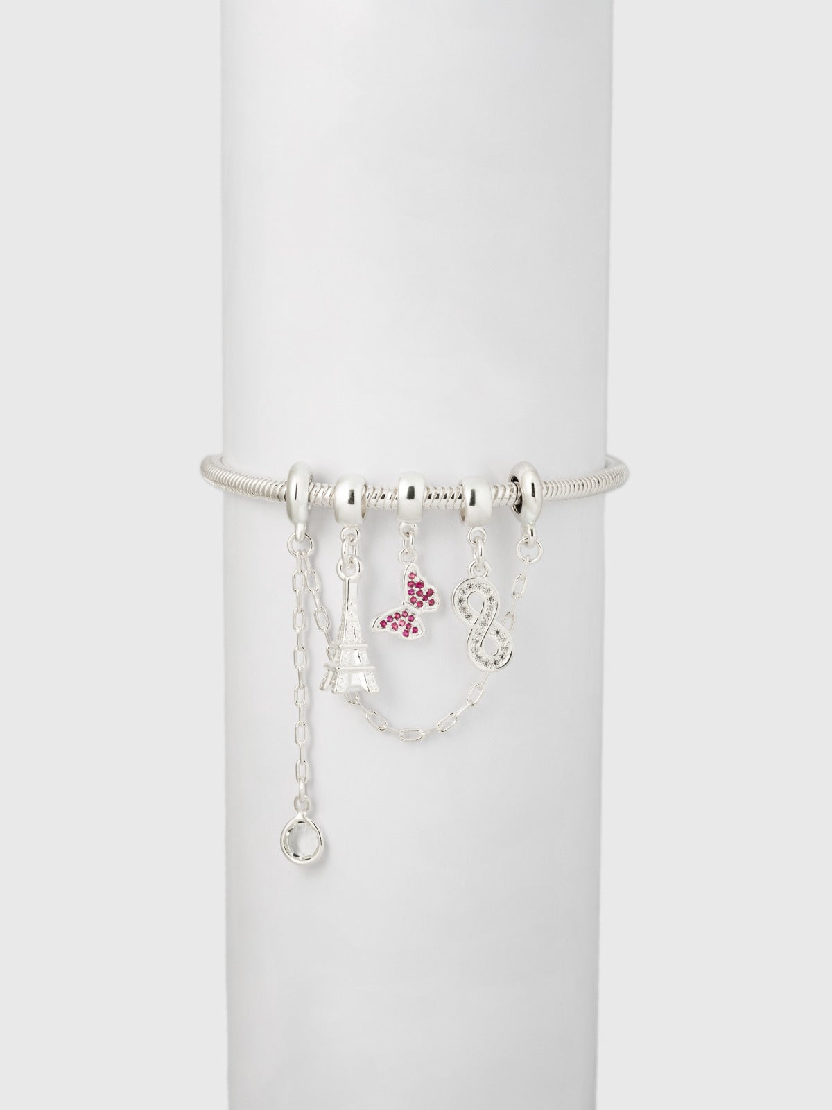 Combo Corazon Brillante + Pulsera Lazo en Plata Ley 925 para Dama