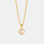 ✅ Joya: Cadena con dije Klaver Lumi – Trébol de cristal enmarcado en textura dorada.