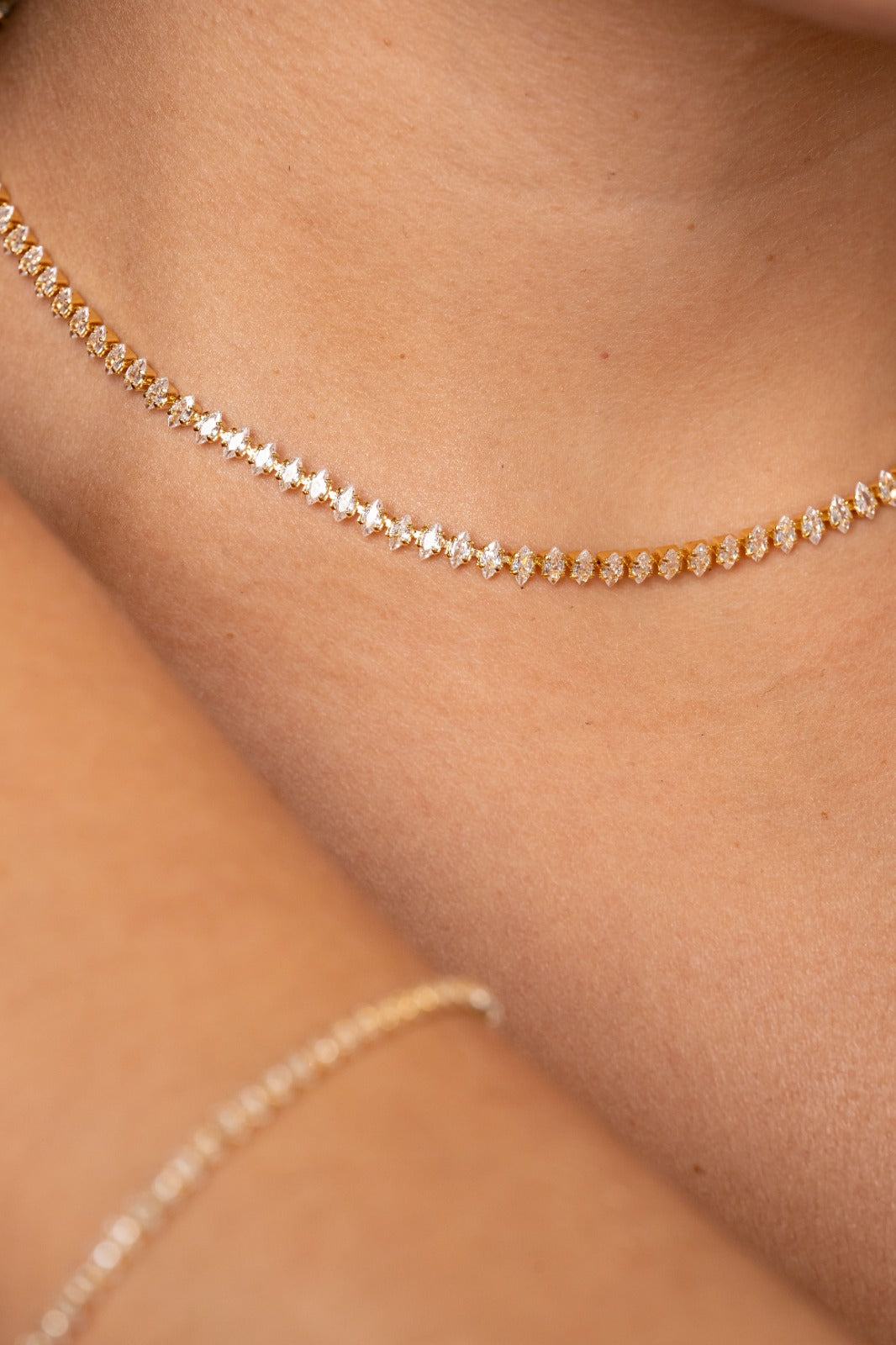 Inspirada en la elegancia atemporal de las joyas imperiales, la Cadena Tenis Marquise está diseñada para mujeres que entienden que el lujo también puede ser accesible.
