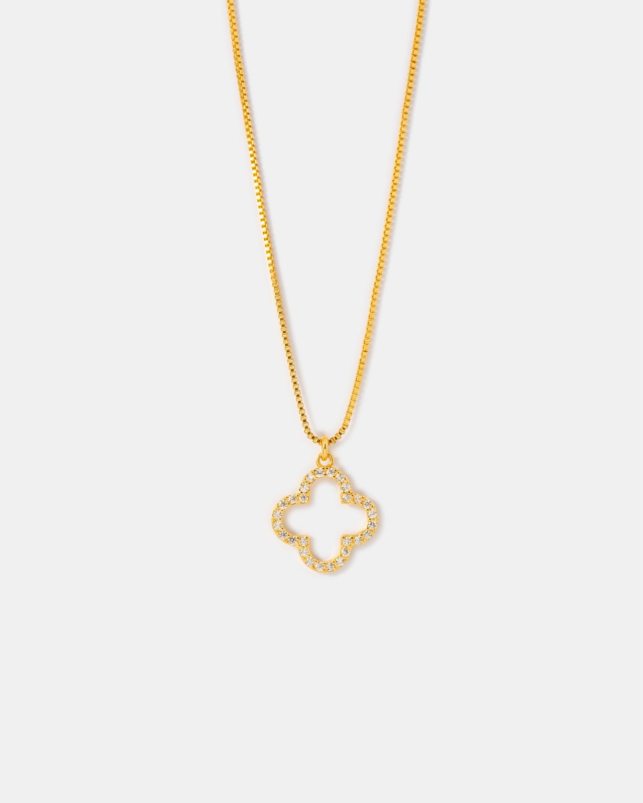 La Cadena VC Cristal en Oro Laminado 18k para Dama es una joya que fusiona elegancia y espiritualidad en una pieza tan delicada como poderosa. Su dije en forma de trébol abierto, incrustado con cristales, no solo captura la luz… también refleja intención, conexión y energía positiva.