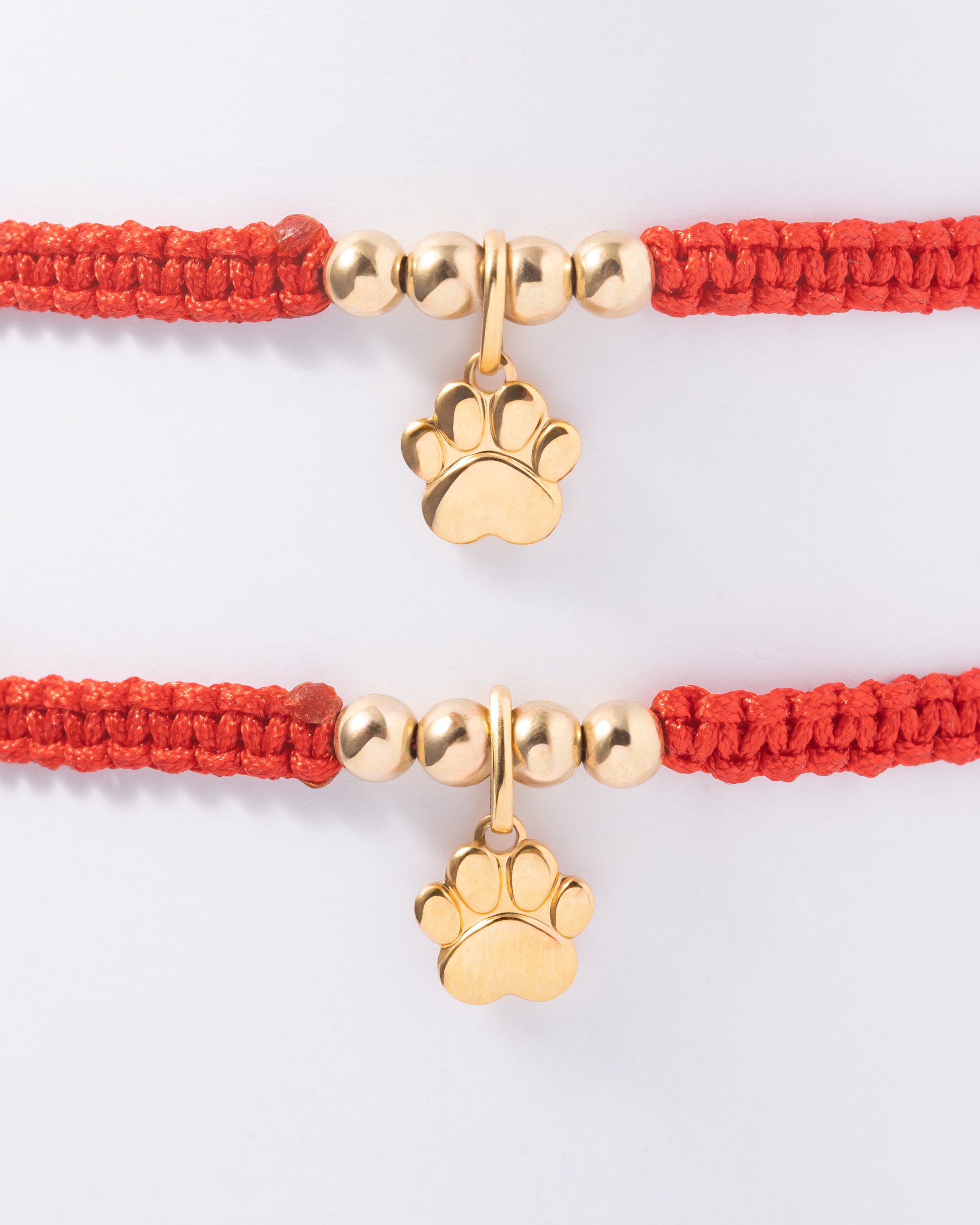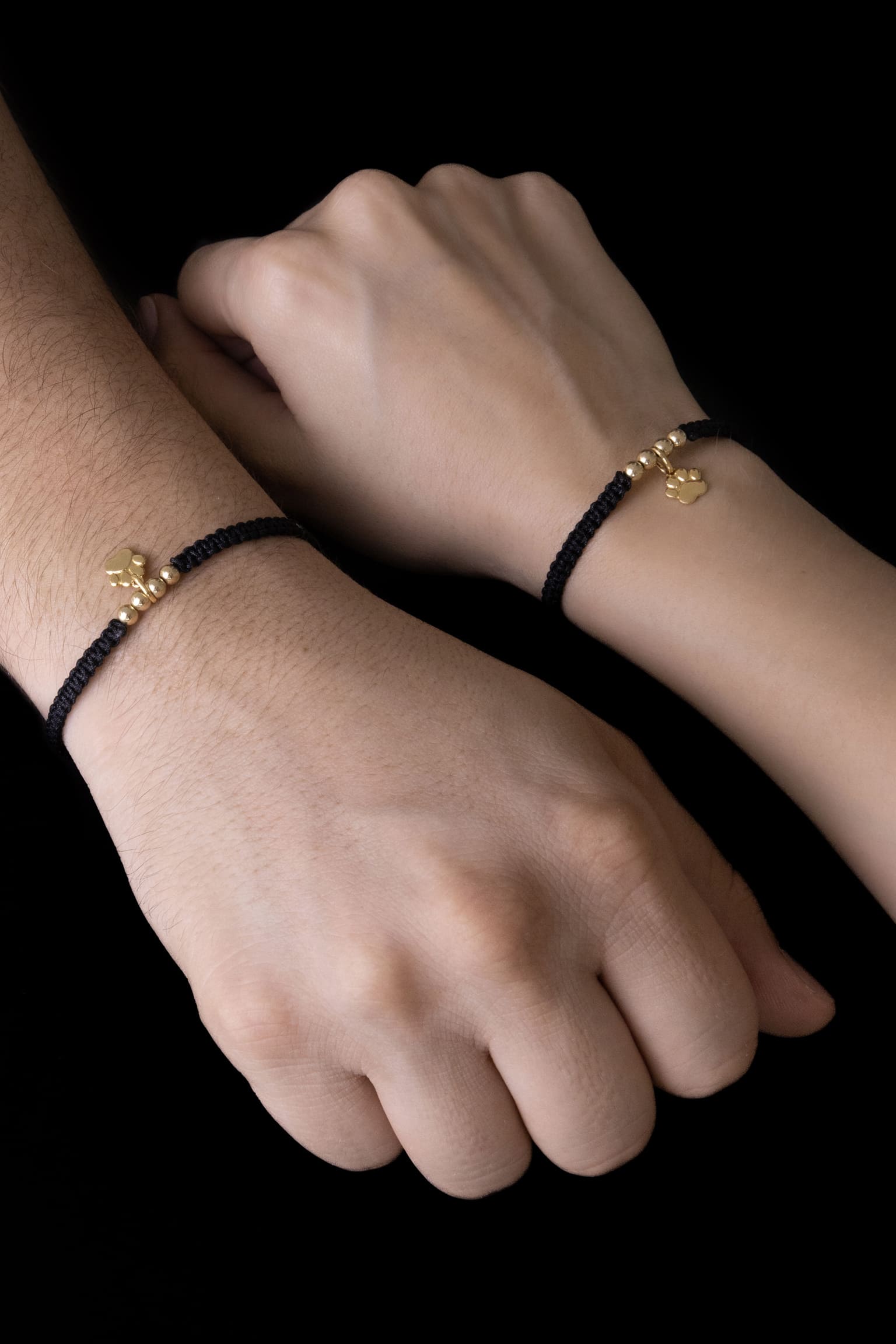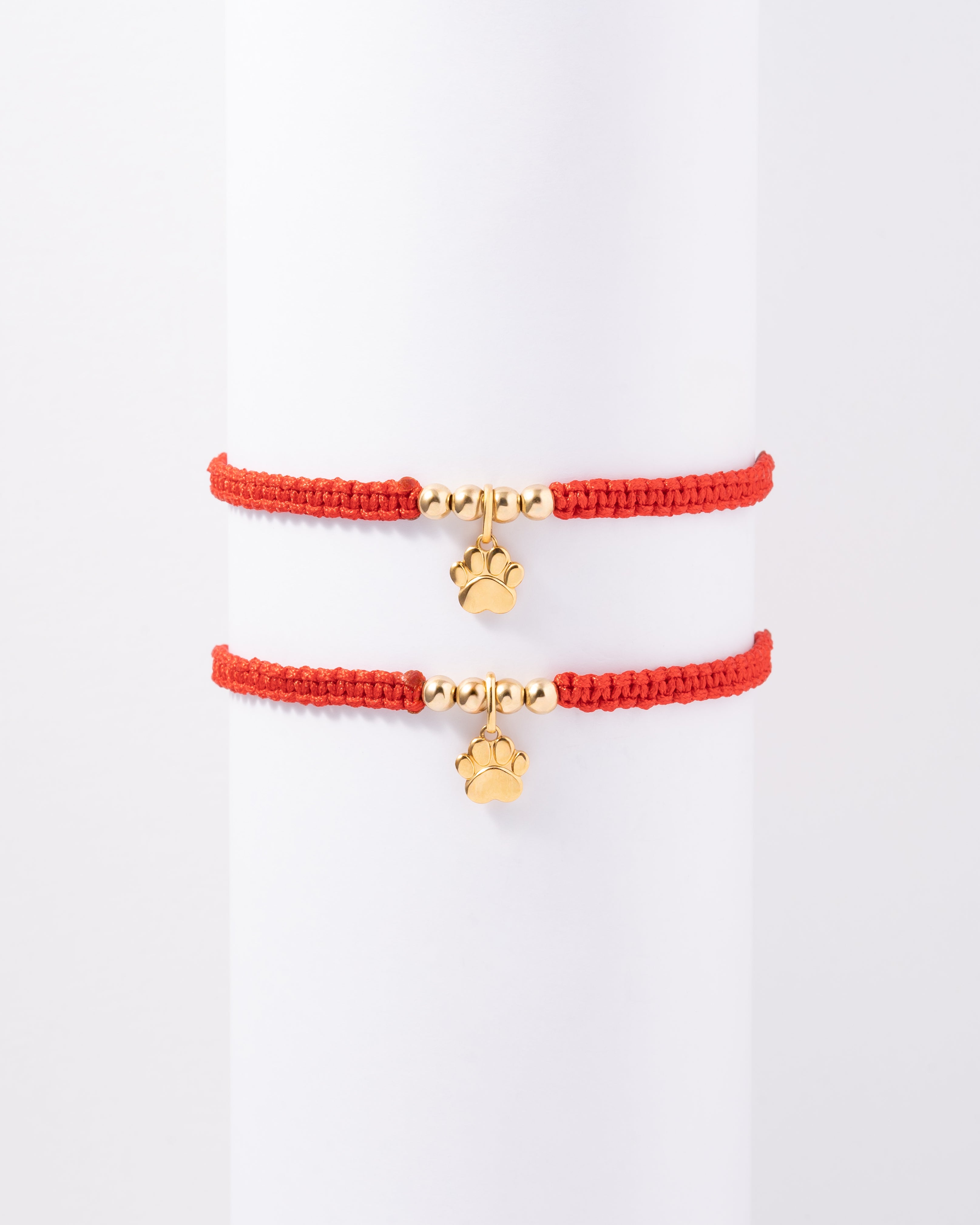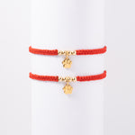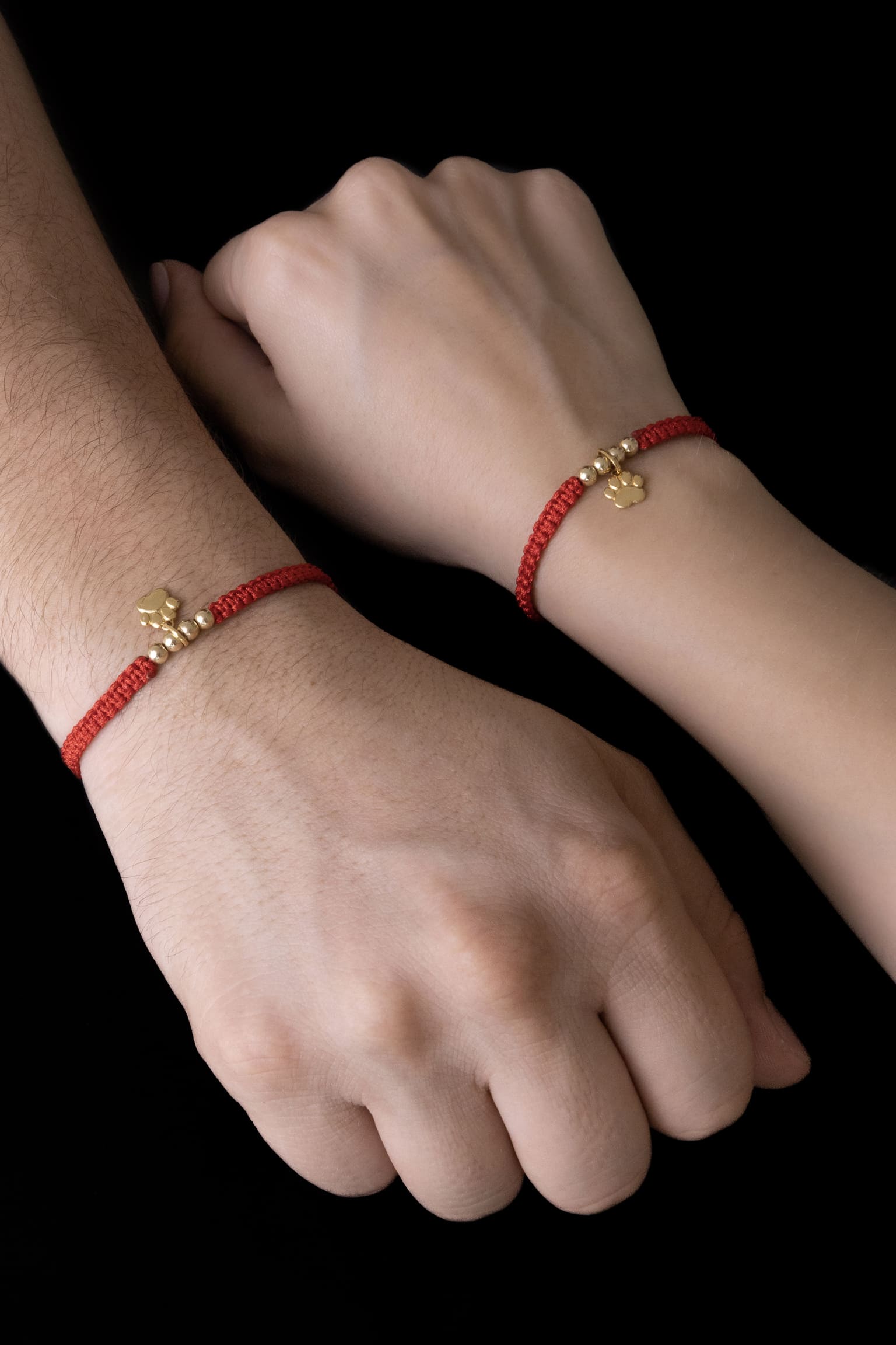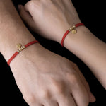Pulsera Huellita en Oro laminado 18k, Hilo Rojo o Negro Para Pareja