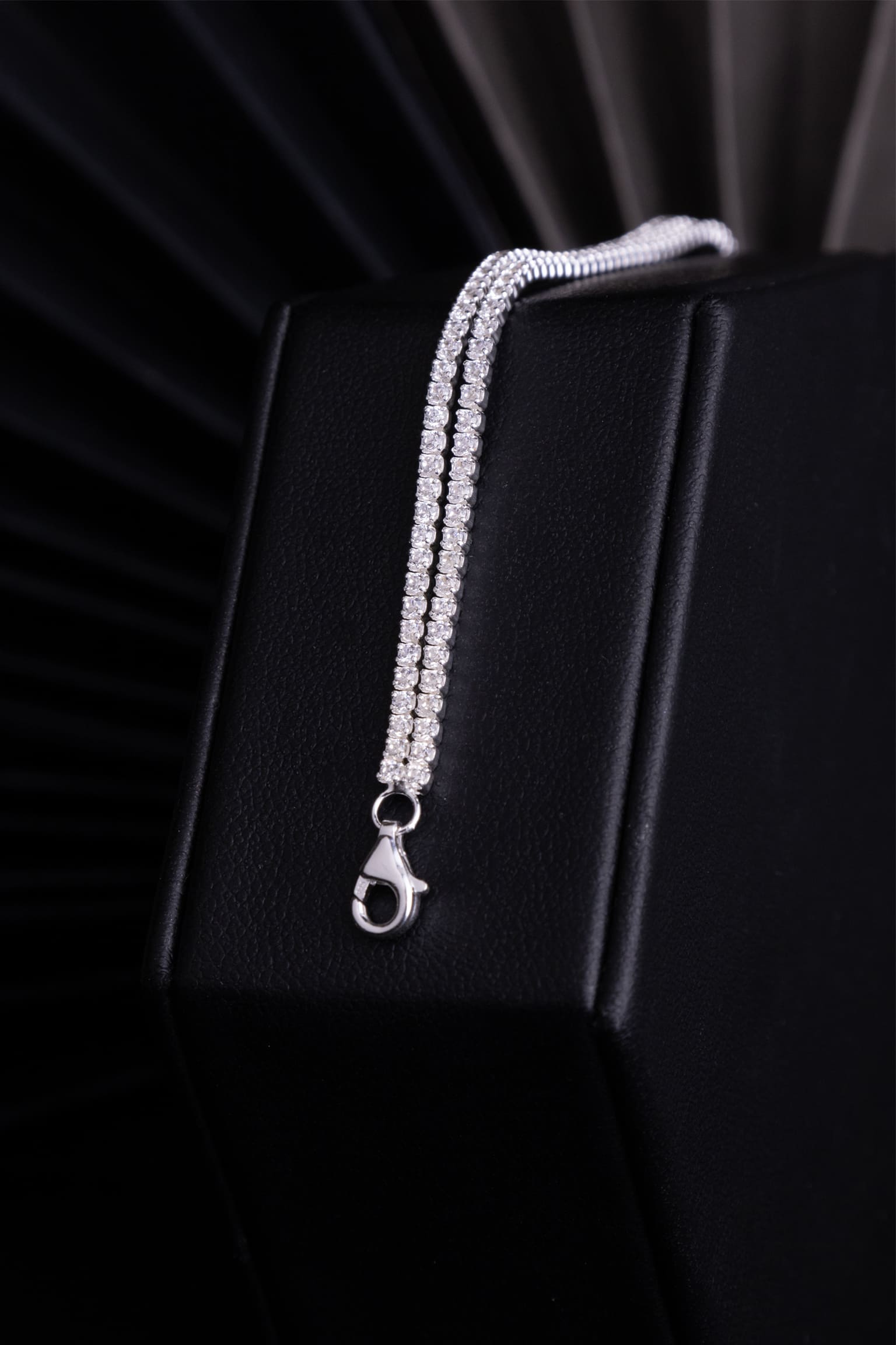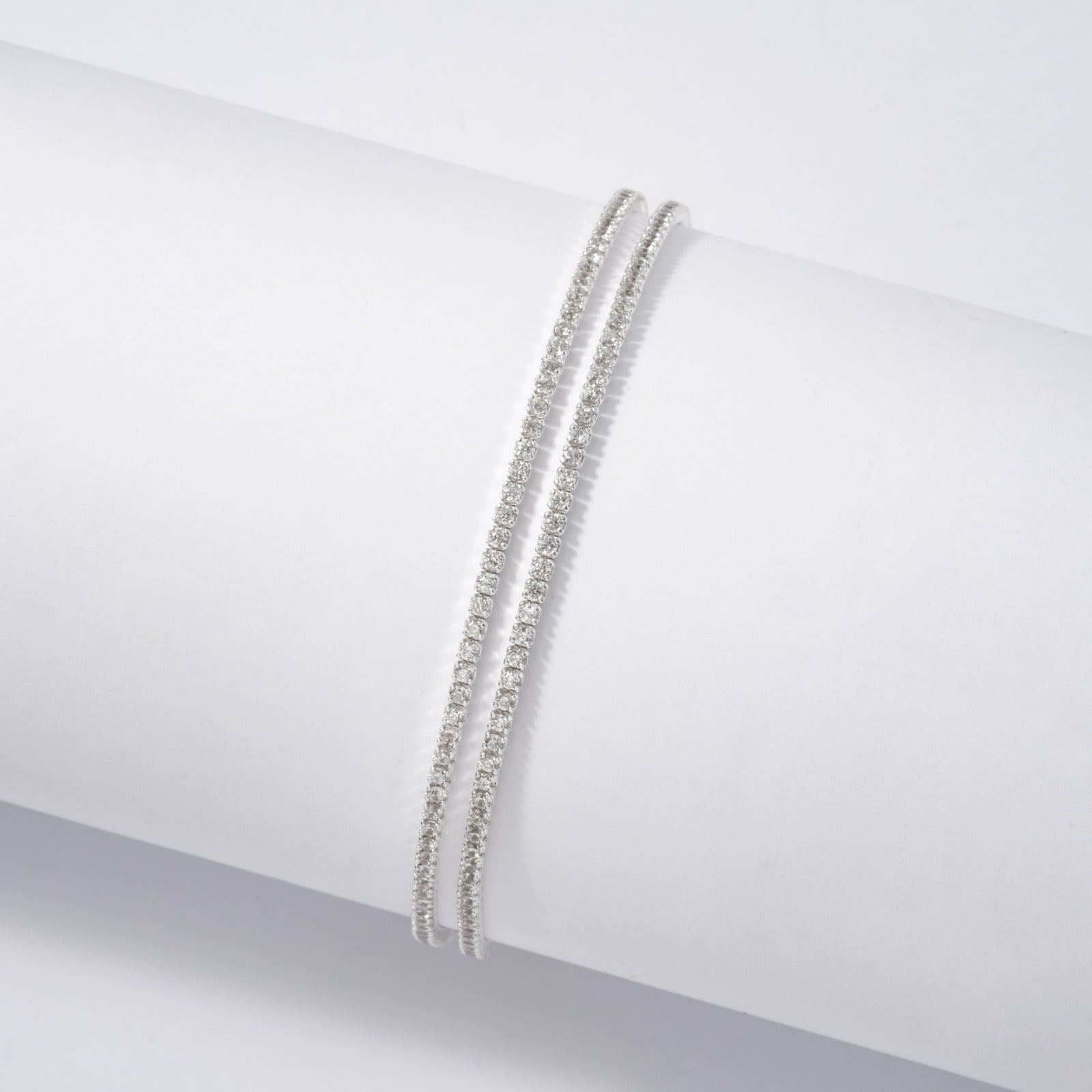 La Pulsera Tenis Doble en Plata 925 es una joya diseñada para quienes entienden que la verdadera sofisticación está en los detalles. Su doble hilera de circones, perfectamente engastados, proyecta un brillo uniforme y refinado que resalta sin esfuerzo, convirtiéndola en una pieza imprescindible tanto para el día a día como para ocasiones especiales.