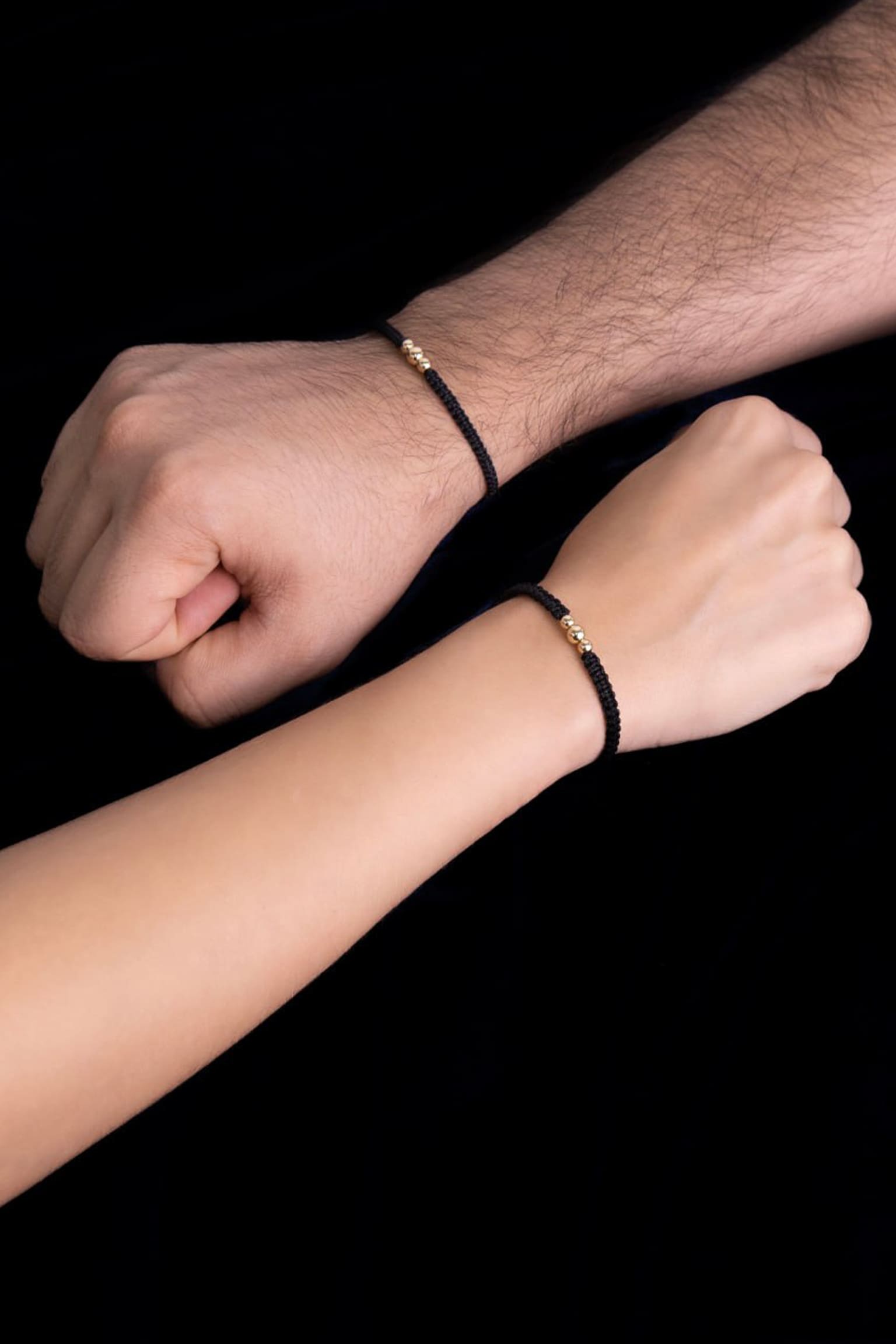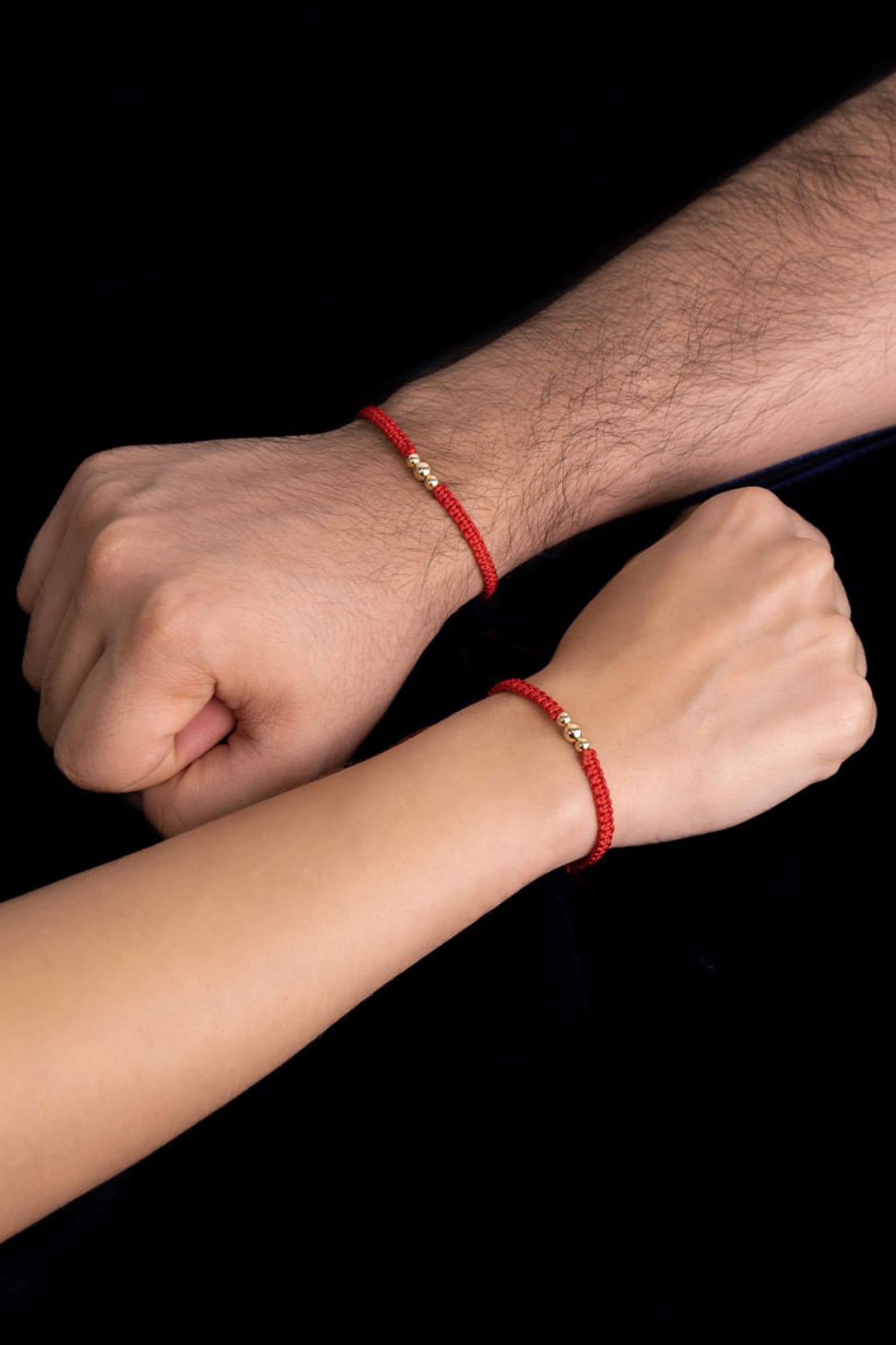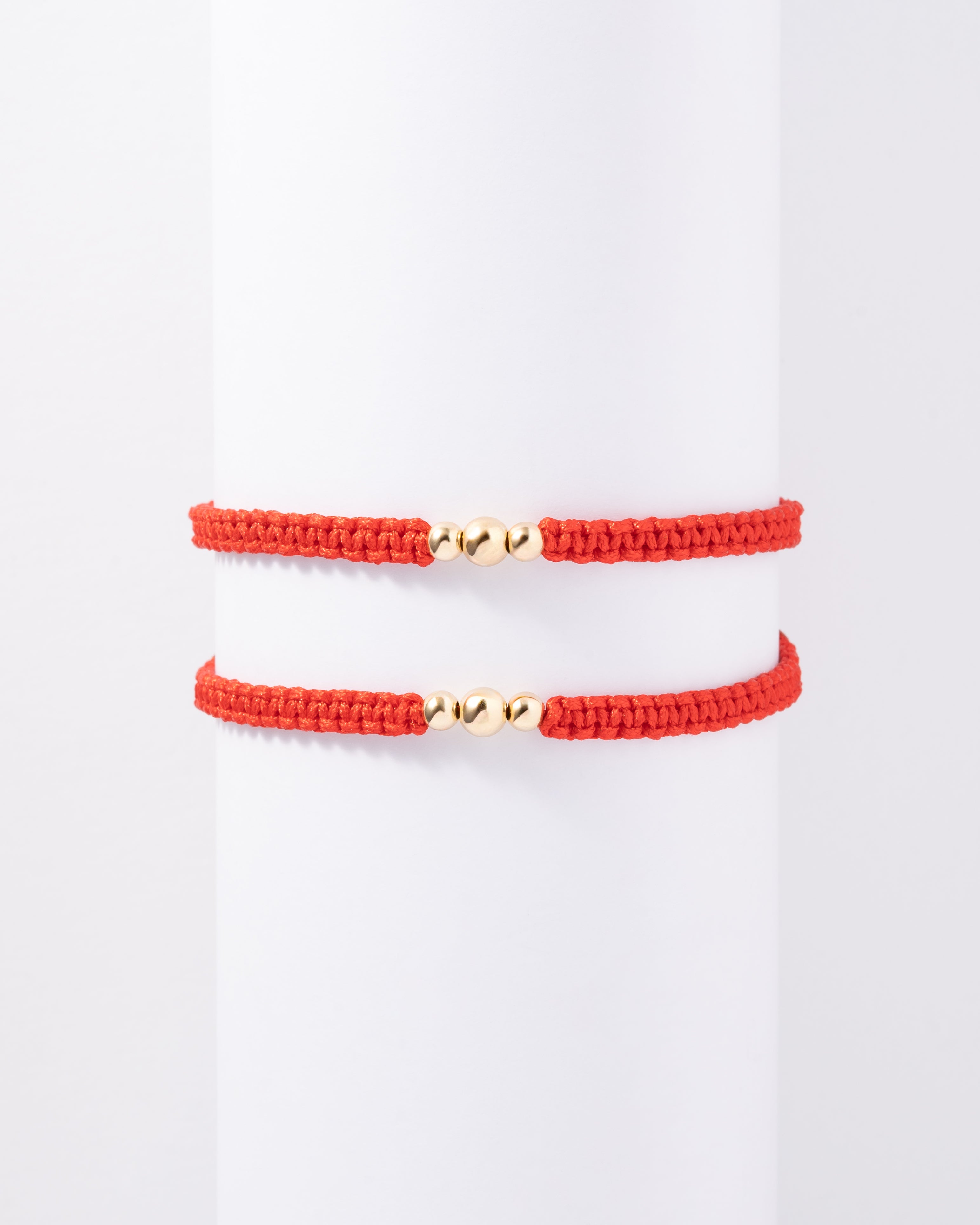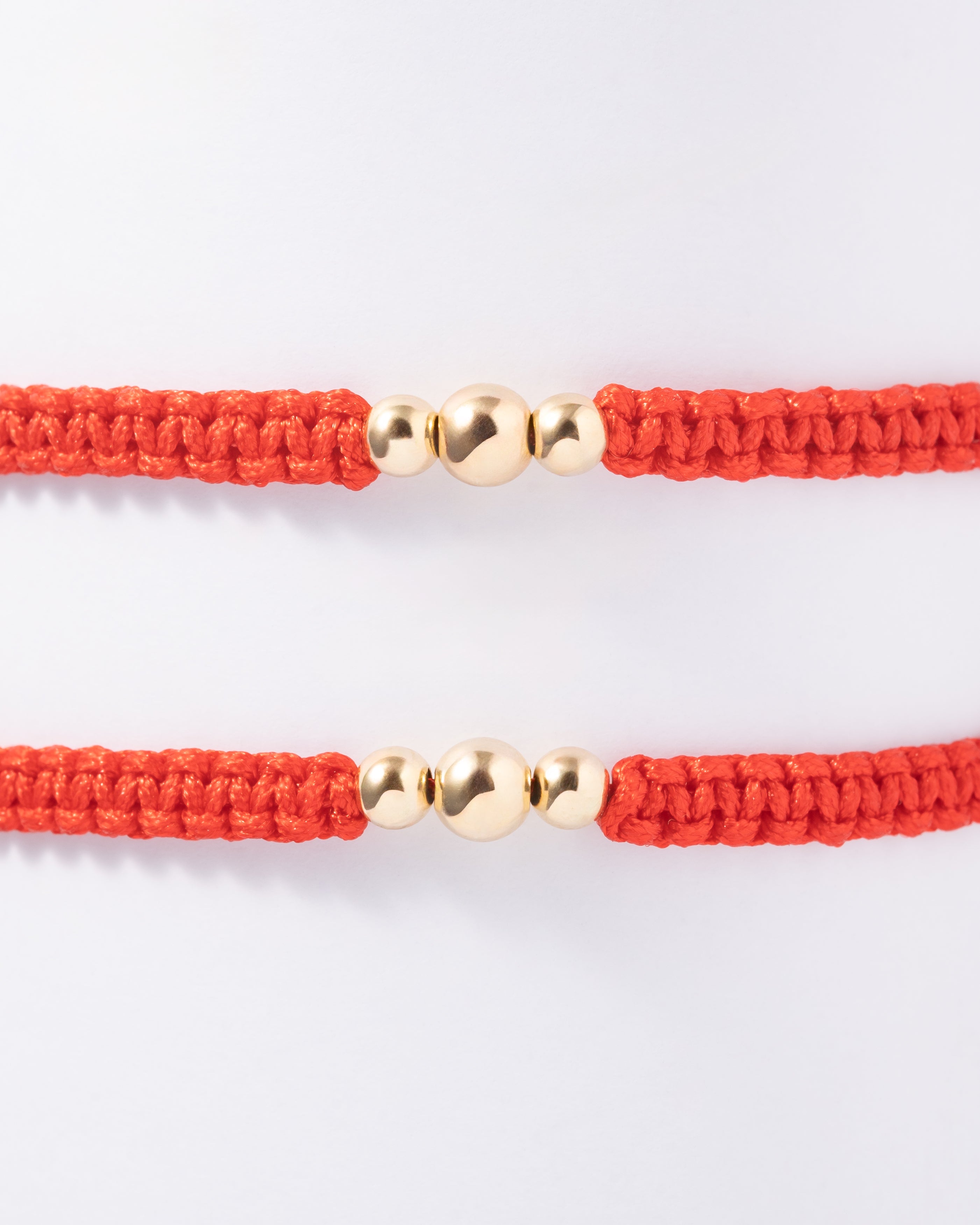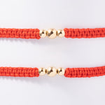 Pulseras 3 Balines gruesa de Hilo Rojo o Negro en Oro laminado 18k Para Pareja