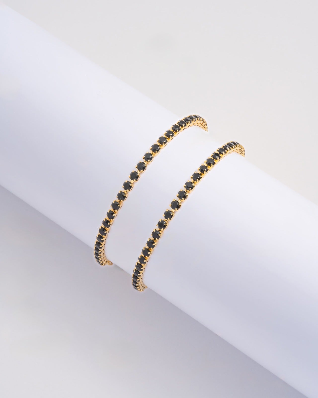 El Combo de Pulseras Tenis Negras de 3 mm en Oro Laminado 18k para Pareja representa ese tipo de amor que es fuerte, auténtico y atemporal.