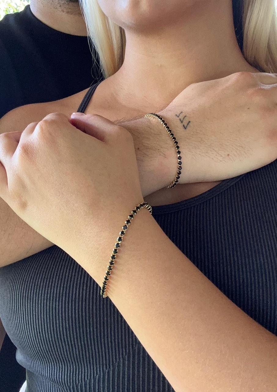 Pulseras Tenis Negra en Oro laminado 18k Para Pareja