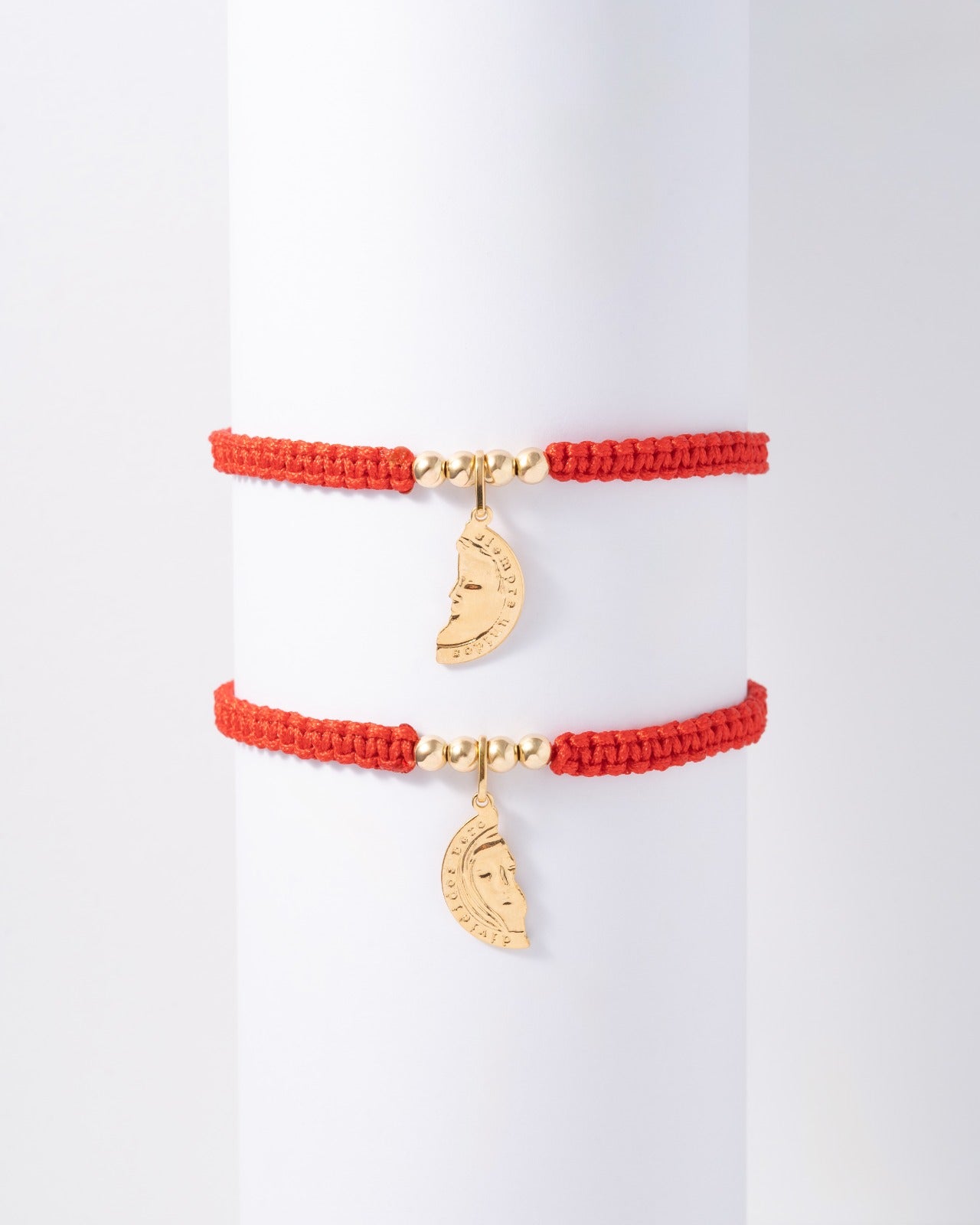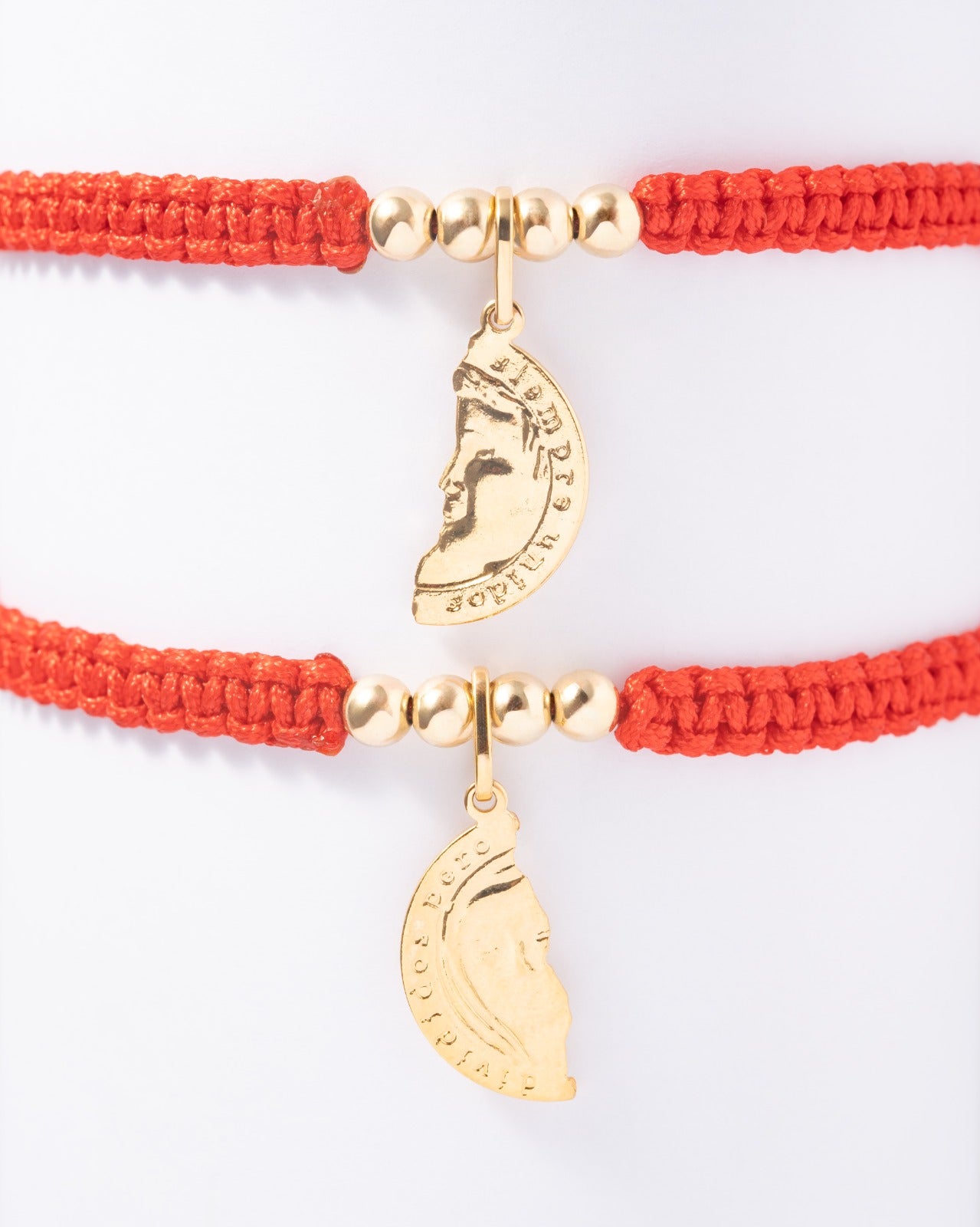 Pulseras Unión de Hilo grueso Rojo o Negro en Oro laminado 18k Para Pareja